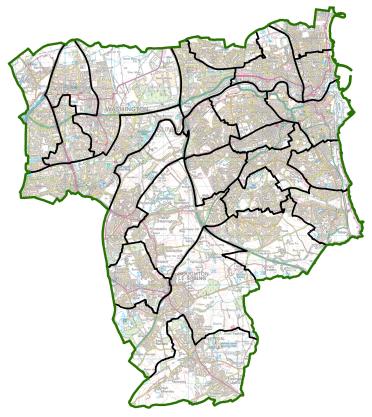 There will be 25 three-councillors wards. The boundaries of 24 wards will change.